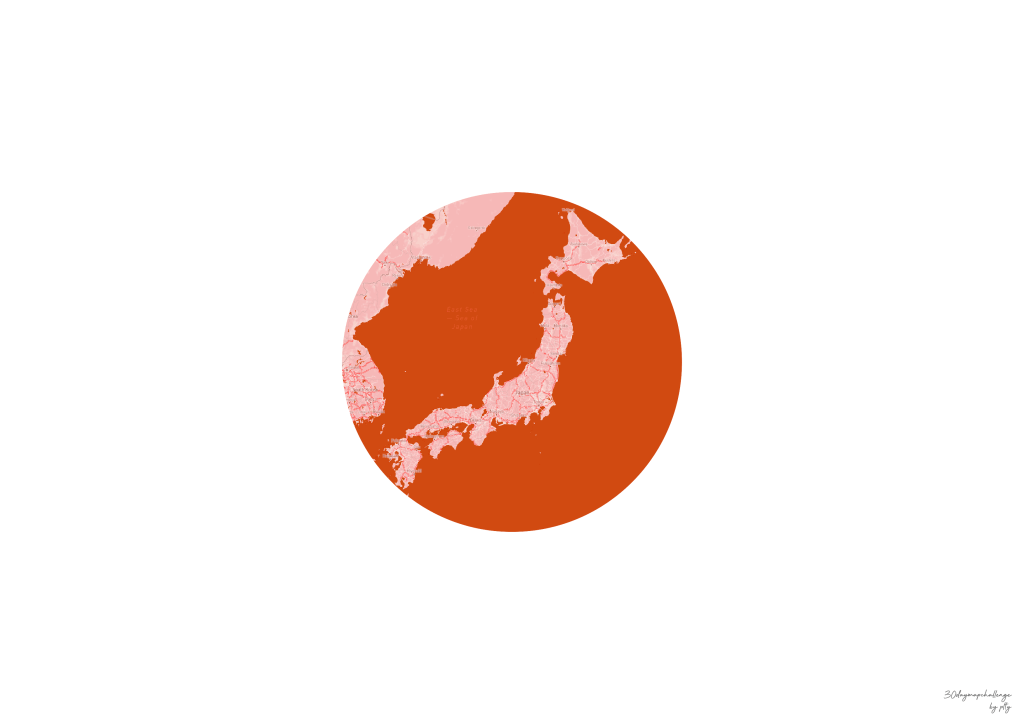 This was a quick one! The idea of Japan’s flag just hit me and I rolled with it. Pretty pleased with the results! I used mapbox.com for creating the base map.